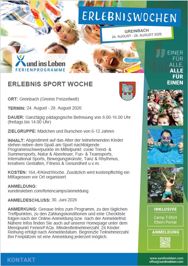 Erlebnis Sport Woche für Mädchen und Burschen von 6-12 Jahren